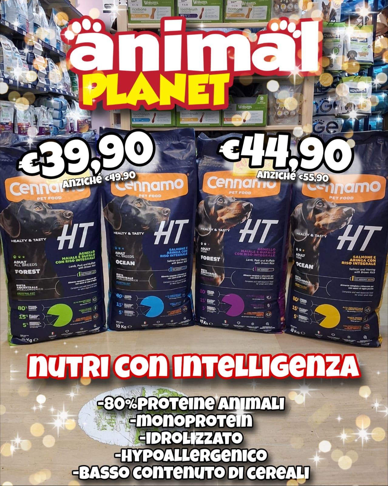 Animal Planet propone quotidianamente offerte competitive e prezzi d'occasione su prodotti alimentari ed articoli per il benessere dell'animale. In alternativa allo shopping, presso il punto vendita sarà possibile effettuare ordini e ricevere la merce direttamente a domicilio grazie allo shop online.
